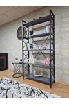 Siyah Boyalı Kitaplık - 5 Raflı Suntalem Lüks Kitaplık Aris Gri