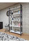 Siyah Boyalı Kitaplık - 5 Raflı Suntalem Lüks Kitaplık Beyaz Mermer