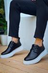 Siyah Cilt Bağcıklı Günlük Erkek Ayakkabısı
