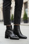 Ayakmod Siyah Cilt Fermuarlı Polarlı Kaymaz Kadın Topuklu Bot 343126 Z