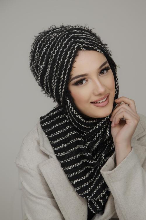 Kelebek Model Büzgülü Bone Şal Tak Çık Modeliyle Çok Şık