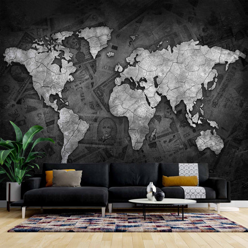 Duvar Kağıdı Baskı Siyah Dünya Haritası Duvar Kağıdı