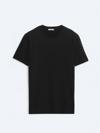 Siyah Düz Bisiklet Yaka %100 Pamuk T-Shirt