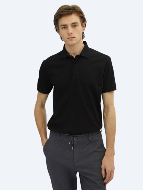 Kip Siyah Düz Polo Yaka %100 Pamuk T-Shirt
