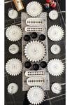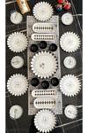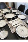 6 adet yuvarlak servis tabağı; 6 adet çay tabağı; 2 adet uzun zeytinlik sunum tabağı; 2 adet oval tabak; 1 adet büyük orta servis tabağı; 6 adet sosluk; kırık ürün garantimiz vardır; !;
