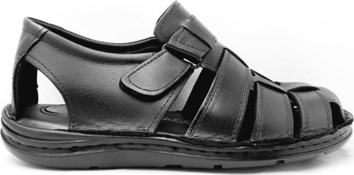 Siyah Erkek Jelli Kapalı Hakiki Deri Sandalet
