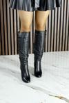 PayBuy Kadın Diz Altı Topuklu Bot Bağcıklı Kalın Topuk Platform Model