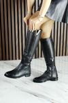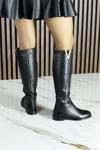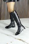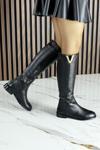 Erkan Saçmacı Siyah Hakiki Dana Derisi Metal Aksesuarlı Fermuarlı Yuvarlak Burun Kalın Topuklu Çizme