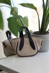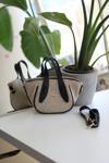Moom Bag Siyah Hasır Doku Çift Saplı Askılı Omuz Çantası