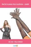 - Şık ve zarif: Siyah incili elmas detaylarla süslenmiş bu uzun eldiven, tarzınıza zarafet katacak.