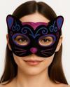 Siyah Kadife Kaplama Üzeri Pembe Mavi Sim İşlemeli Kedi Maskesi, balolar, maskeli partiler veya kostüm partileri gibi eğlenceli etkinliklerde sevimli ve dikkat çekici bir kedi görünümü elde etmek isteyenler için mükemmel bir seçimdir. Yumuşak siyah kadife kaplaması, parlak sarı yeşil sim işlemesi ve sevimli kedi kulakları ile bu maske sizi partinin en eğlenceli ve sevimli konuğu yapacak.