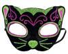 Go İthalat Siyah Kadife Kaplama Üzeri Pembe Yeşil Sim İşlemeli Kedi Maskesi 20x13 cm (5365)
