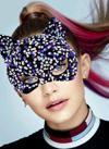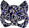 Siyah Kadife Kumaş Üzerine Mor Beyaz Payetli Pullu Parti Maskesi 16X14 Cm