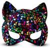Siyah Kadife Kumaş Üzerine Rengarenk Payetli Pullu Parti Maskesi 16x14 Cm
