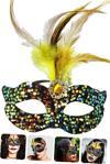 - Sarı tüyler ve sarı taşlar maskeye lüks ve göz alıcı bir görünüm kazandırır.
