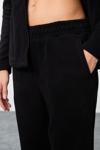 Siyah Kalın Yumuşak Dokulu Dik Yaka Oversize Nakışlı Polar Kadın Eşofman Takım -95339