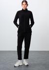 Moda Düz Dik Yaka Casual Günlük Ekru Rahat Kesim Dik Yaka Basic Triko Alt-Üst Takım - Image 1