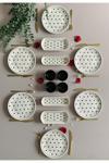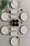 Venüs Home Decoration tarafından sunulan bu şık kahvaltı takımı, modern tasarımı ve zarif siyah kalp desenleri ile sofralarınıza estetik bir dokunuş katıyor.