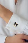 Esra Pamir Siyah Kanatlı Düğme Süsü Broş