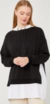 Siyah Kapuşonlu Gömlek Detaylı Sweat