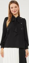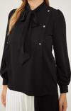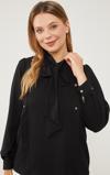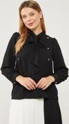 Levidor Siyah Kendinden Fular Bağlamalı Şifon Gömlek