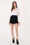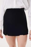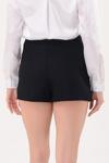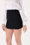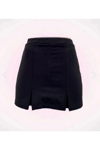 Siyah Keten Karışımlı Çift Yırtmaçlı Şort Etek