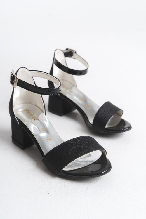 Siyah Kız Çocuk Topuklu Ayakkabı , Kız Çocuk Abiye Ayakkabı