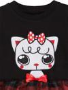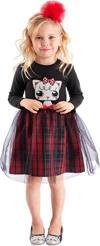 Üst gövdesi kalın pamuklu kumaştan tasarlanmış, kedi aplikeli, belinde büyük saten kurdeleli elbise. Elbisenin etekleri iki katlıdır. Alt katta dokuma ekose kumaş ve üstünde hareket kazandırılmış siyah tül vardır.