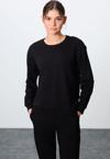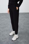 Tommy Life Siyah Kompakt Pamuklu Kalın Pürüzsüz Dokulu O Yaka Oversize Fit Kadın Eşofman Takım - 95341