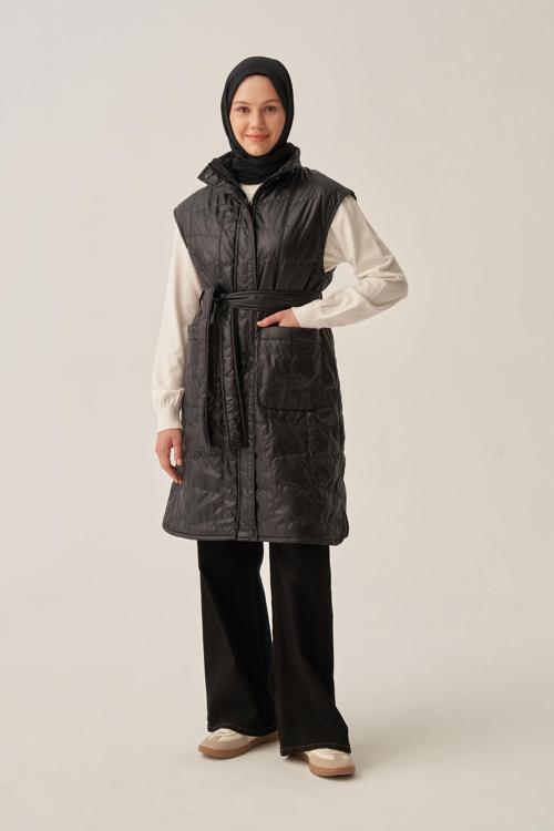 Şıklığı detaylarda arayanlara özel Siyah-Kuşaklı Kapitone Yelek le zarif bir görünüm yakalayın. Günlük ve özel kombinler için ideal tasarım ALLDAY’de!