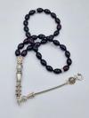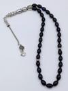 SİYAH-MAVİ ARPA KESİM ALPAKA PÜSKÜLLÜ ATEŞ KEHRİBAR TESPİH.