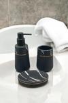 Ürün Hikayesi: Siyah mermer desenli seramik banyo seti, zarif tasarımıyla banyonuza şıklık katar. Üç parçadan oluşan set günlük kullanımda pratiklik sunar.