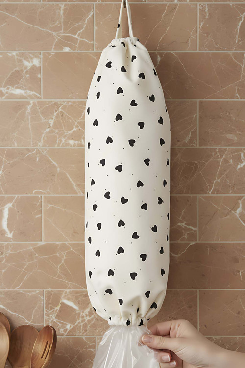 Siyah Mini Kalp Asılabilir Poşetlik & Bez Poşet Düzenleyici