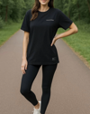 İntive lingerie-innocent&attractive Siyah Minimal Yazılı Altı Tayt Üstü Tişört Basic Günlük Rahat Süprem Takım