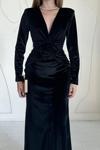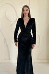 Siyah Önü Yırtmaçlı Güllü Elbise