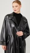 Levidor Siyah Oversize Suni Deri Trençkot