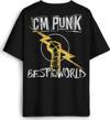 - Siyah Oversize Tişört Best In The World Cm Punk Karma Dövüş Gym Spor Sırt Ön Baskılı Unisex T-shirt - OVR12S-4388