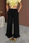 Siyah Paçası Fırfırlı Keten Pantolon