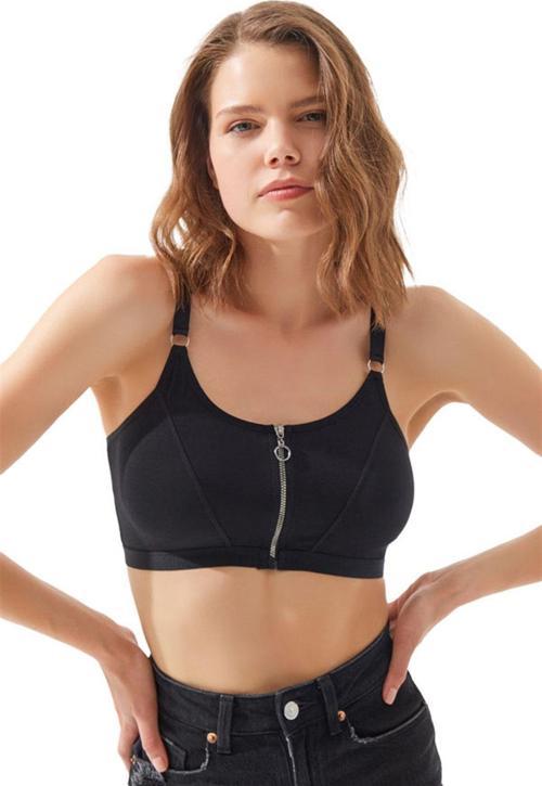 Siyah Pamuklu Ayarlanabilir Askılı Fermuarlı Bralet Büstiyer