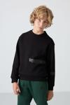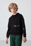Tommy Life Siyah Pamuklu Kalın İçi Tüylü Yumuşak Dokulu Standart Fit Baskılı Erkek Çocuk Sweatshirt - 11238