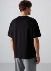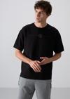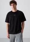 Siyah Pamuklu Kalın Yumuşak Dokulu Oversize Fit Baskılı Erkek T-Shirt - 88323