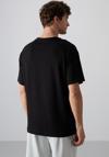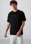 Siyah Pamuklu Kalın Yumuşak Dokulu Oversize Fit Baskılı Erkek T-Shirt - 88329