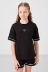 Siyah Pamuklu Yumuşak Dokulu Standart Fit Basic Kız Çocuk Şort Takım - 75183