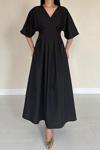 Siyah Pileli Uzun Elbise