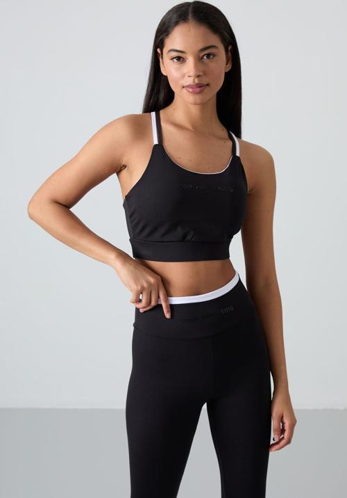 Tommy Life Siyah Yüksek Bel Kapri-Crop Atlet Slim Fit Kadın Tayt Takım - 95284