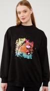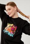 Siyah Pul İşlemeli Baskılı Sweatshirt