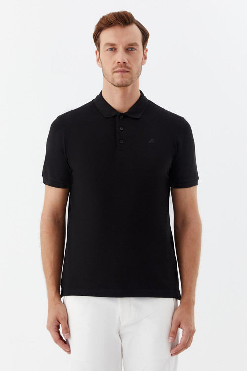 Siyah Regular Fit %100 Pamuklu Polo Yaka Tişört