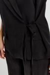 Modern duruşu ve yaka tasarımıyla öne çıkan bu kadın yelek, zarif ve rahat bir stil sunar. Yumuşak dokusu ve hafif kumaşı sayesinde gün boyu konfor sağlayan bu parça, şıklığından ödün vermeyenler için mükemmel bir tercihtir.