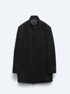 Erkek Siyah Düğmeli Berberi Yaka Dynamic Fit Rahat Kesim Classic Kaşe Kaban - Image 1