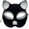 Balolar ve özel günler için mükemmel bir aksesuar olan Siyah Renk Gümüş Simli Süet Kedi Maskesi ile göz kamaştırın!